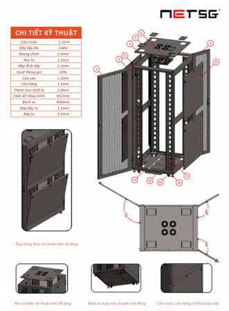 | Cửa trước | 01 cánh - 75% đột lỗ thông gió, thép 1.2mm |